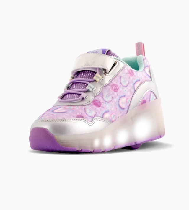Zapas arcoiris, glitter rosa, con luces. Capellada confeccionadas con materiales textiles y sintéticos.