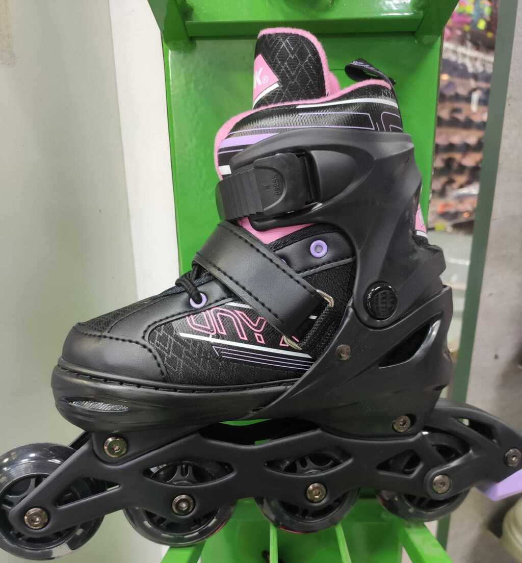 Roller 3 en 1, permite cambiar la configuración de las ruedas para uso en linea, intermedio y quad, proporcionando una experiencia de patinaje personalizada. Las ruedas están fabricadas en PU, el chasis y el freno en PP, asegurando ligereza y durabilidad. Con una capacidad de soporte de hasta 70kg, son adecuados para usuarios a partir de los 3 años. Incluye protecciones.
